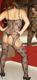 Дамочка позирует в сетчатом костюме, чулках. Но на ней всегда неизменные стринги.