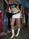 Эта козочка в белой мини юбке.Явно всех мужиков,совратила.