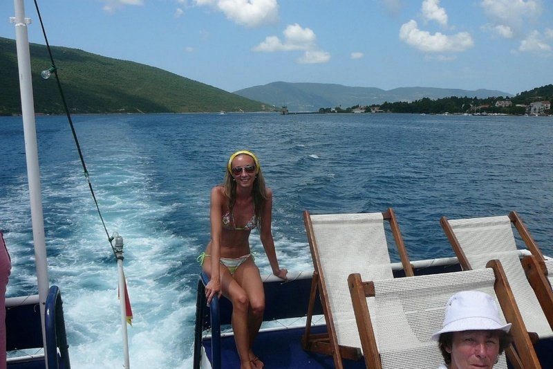 Худенькая блонда с внешностью "на любителя" позирует на море, на катере и в лифте гостиницы делает минет.
