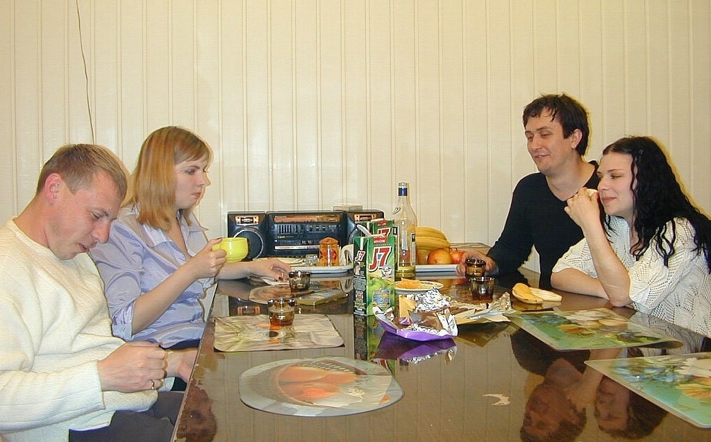 Судя по упаковке сока джей севн это начало нулевых, магнитофон правда с виду хорошо сохранился, даже шахматы на столе и никаких мобильных гаджетов, вот время было, никто не отвлечёт звонком :)