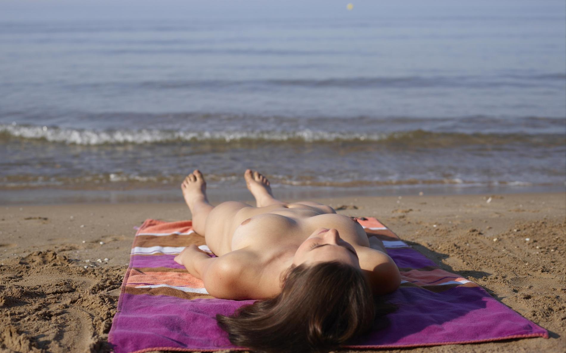 Карина предпочитает уединять и загорать в чём мама родила. Очень хочет ровного загара без беленьких полосок ! Думаю на общем пляже она имела бы поклонников !