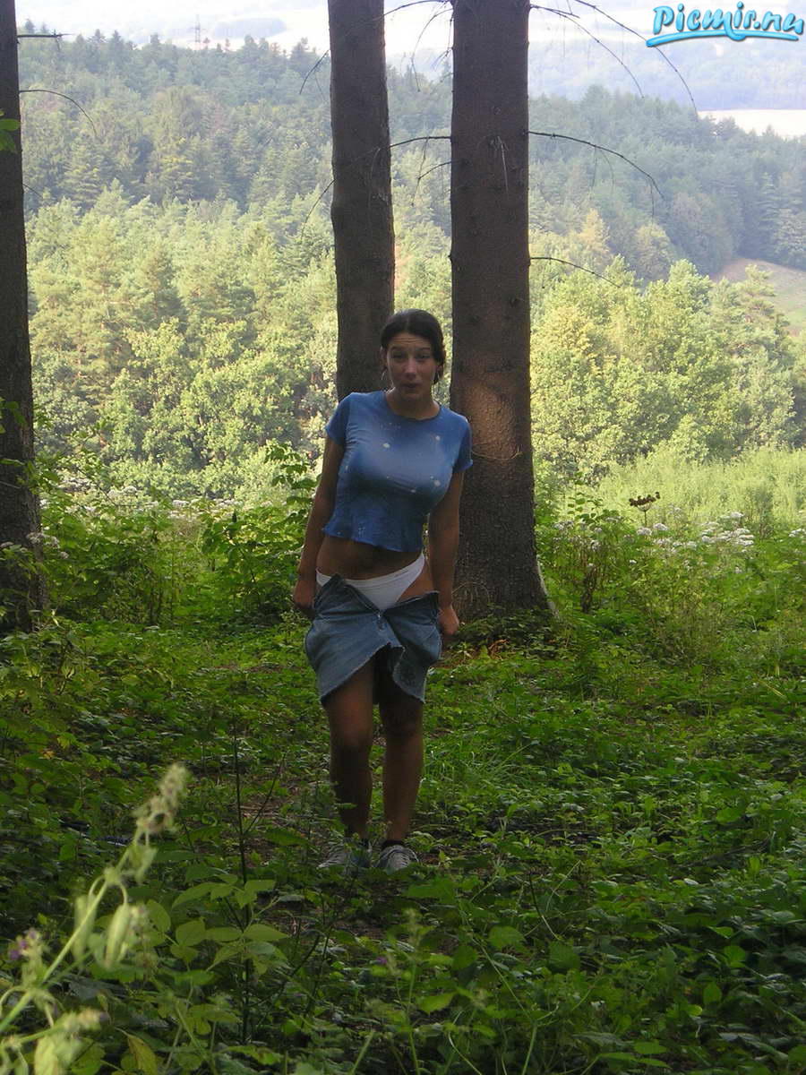 Жгучая брюнеточка с другом гуляли по лесу и вдруг ей захотелось сделать фотосессию на природе для своего фотоальбома. Несмотря на большое количество комаров и мошек она стала медленно обнажаться. Вторая часть покруче будет.