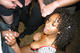 чёрненькая красотка отсасывает по кругу у группы мужиков.