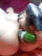 раздвнула ножки и демонстрирует свои дырочки,гоняя в своей попке длинный огурец в презеке.