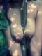 С арбузом, грудь более скромна. А попа в полосатых штанах. Кажется просто громадной.