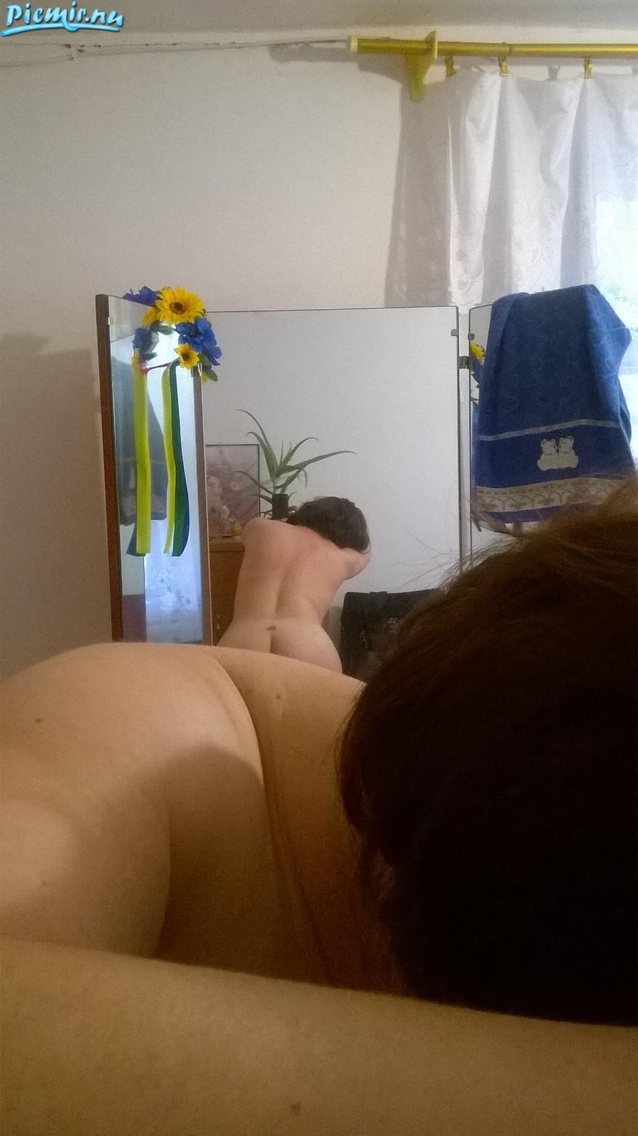 Позирует перед зеркалом, для меня и для вас.