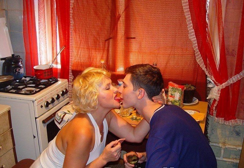 Мама знакомит сыночка со своей блядской пиздой, молодец
