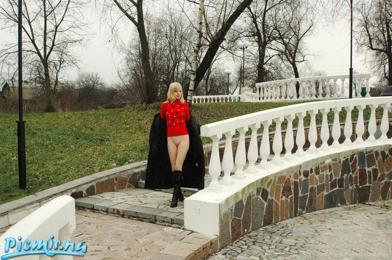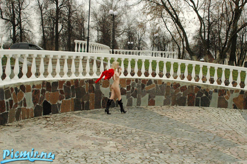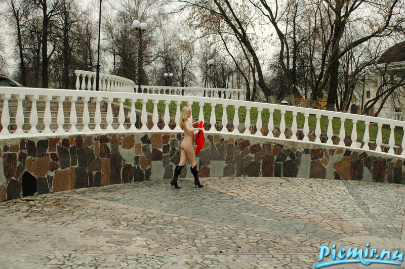 Нормально прогуливается блондиночка!.. Шикарные сапожки и кофточка тоже ничего, так бы и "взял" ее прямо у мостика.