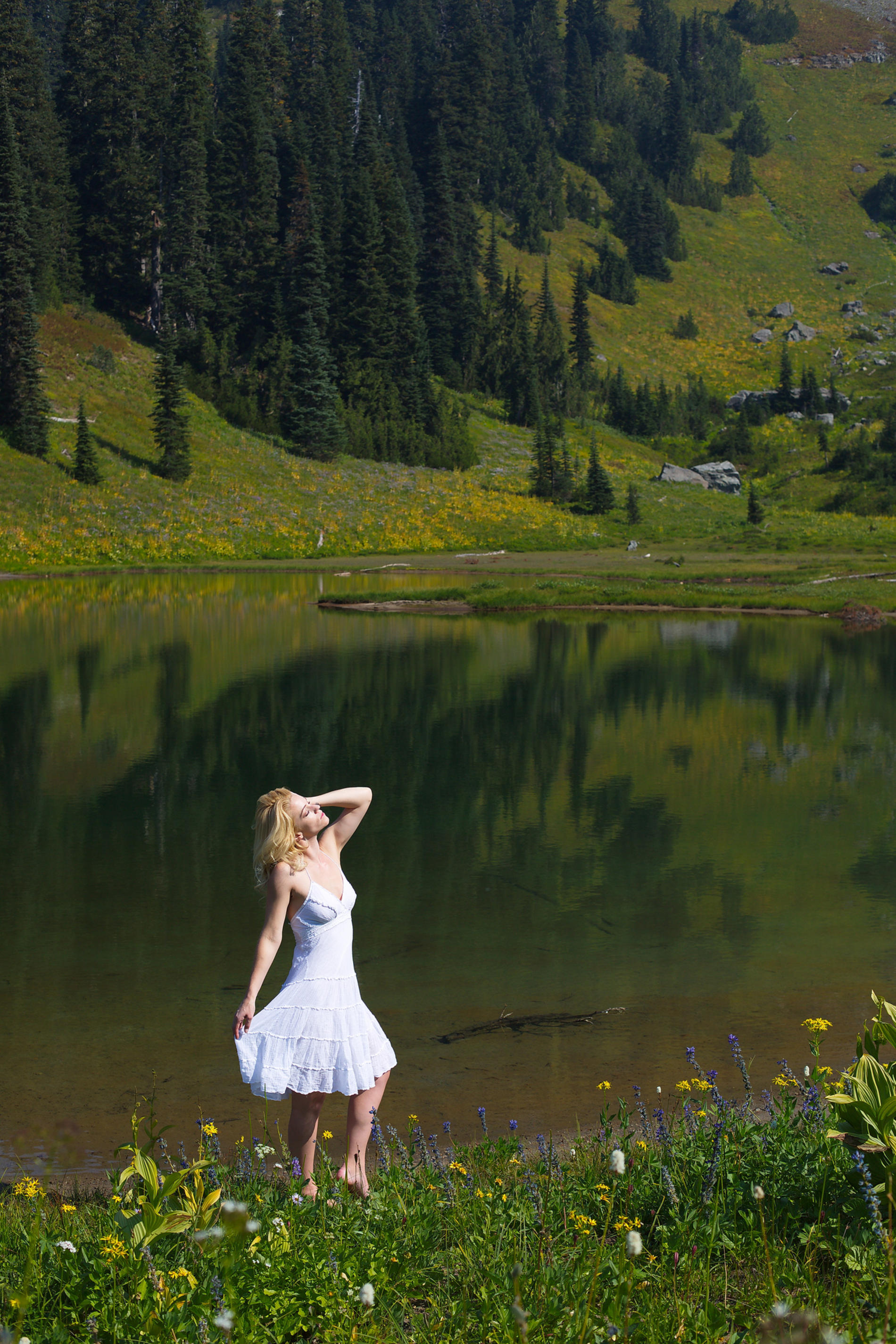хрупкой2 смотрится фигурка блонды на фоне вековых деревьев
