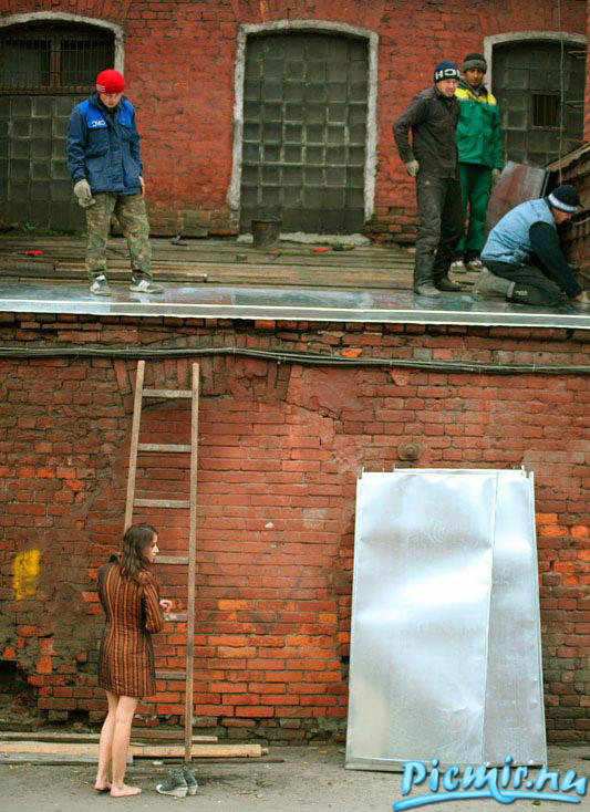 Симпатичная девочка своей фотосессией в стиле ню приятно скрасила рабочие будни остарбайтерам, будет что им вспомнить...