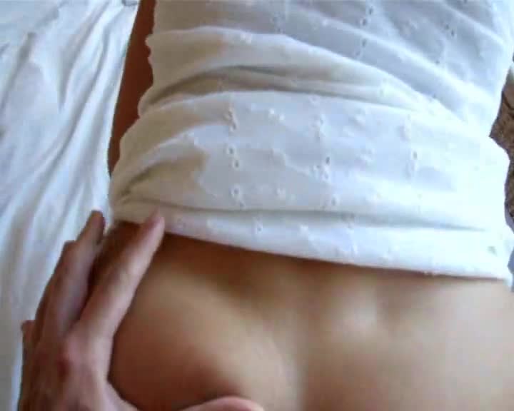 Крашеная дамочка в белом платье отсасывает член, а потом становится рачком на кровать и подставляет свою киску парню, в финале он обильно заливает спермой ее попку....