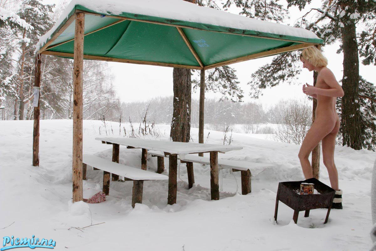 согласен: пизденка красивая. Но мороз однако! как бы не застудила красоту!