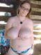 приятная пышка демонстрирует свою небритость и большие сиськи.