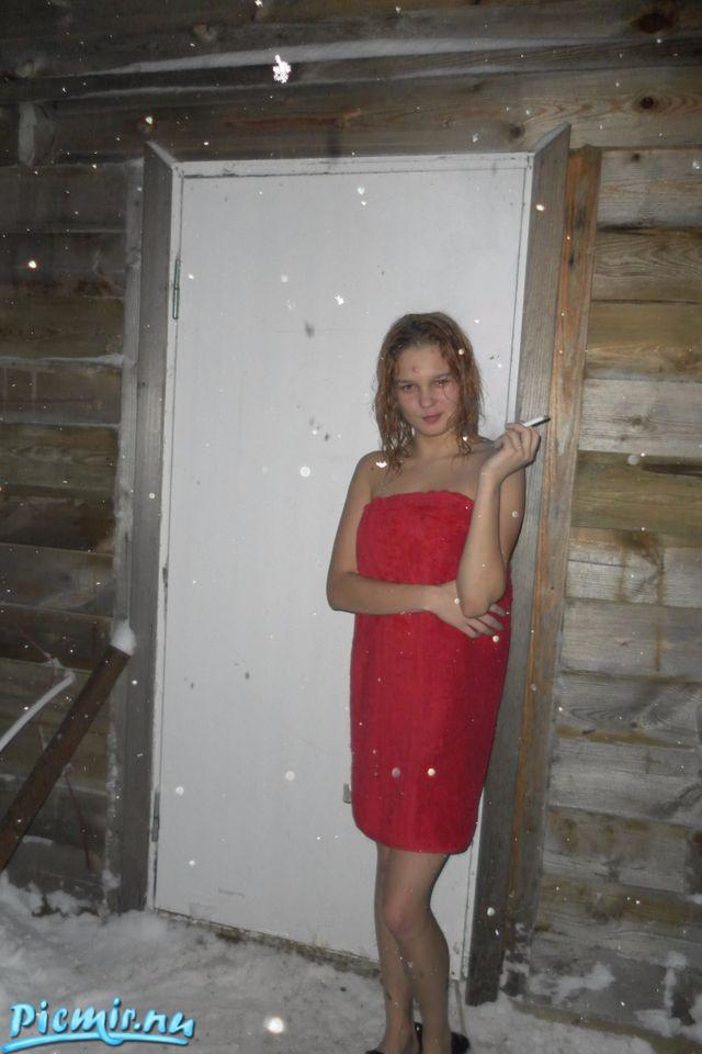 так наверно она в баньке моется, а после парилочки не страшно на улицу выходить