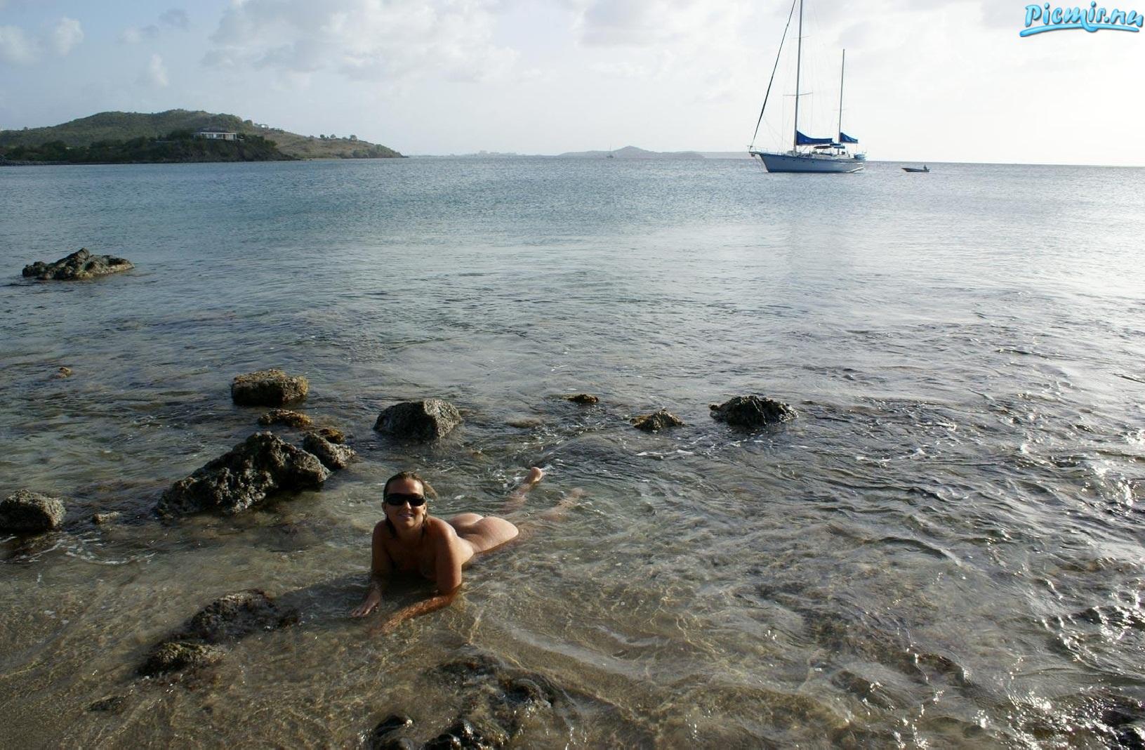 На фото запечатлен день отдыха красивой женщины на море, а так же, как она после этого искупалась в бассейне отеля, приняла ванну и легла на кровать.