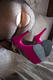 необычная татуированная девушка в черном боди с розовыми волосами на голове