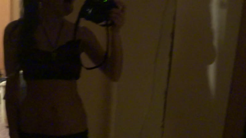 девушка снимает видео селфи, показывает свою пилоку и титьки