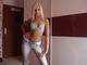 Блондинка с хорошенькой фигурой позирует дома будто модель.