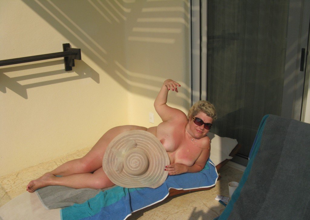 Отвязная взрослая женщина обожает загорать голышом, и не комплексует по поводу фигуры.