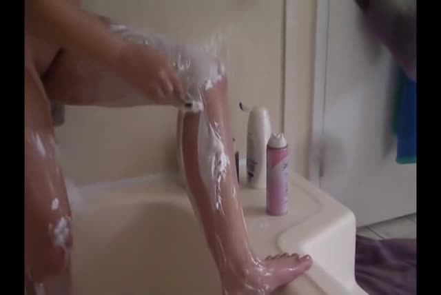Сексуальная девчонка с хорошей фигуркой бреется в ванной.