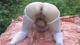демонстрирует себя раздвигая свои ножки и стоя раком перед фотокамерой.