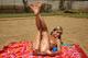 Девочка загорает.