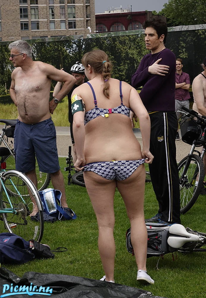 Фото фиксация участия пышки в голом велопробеге