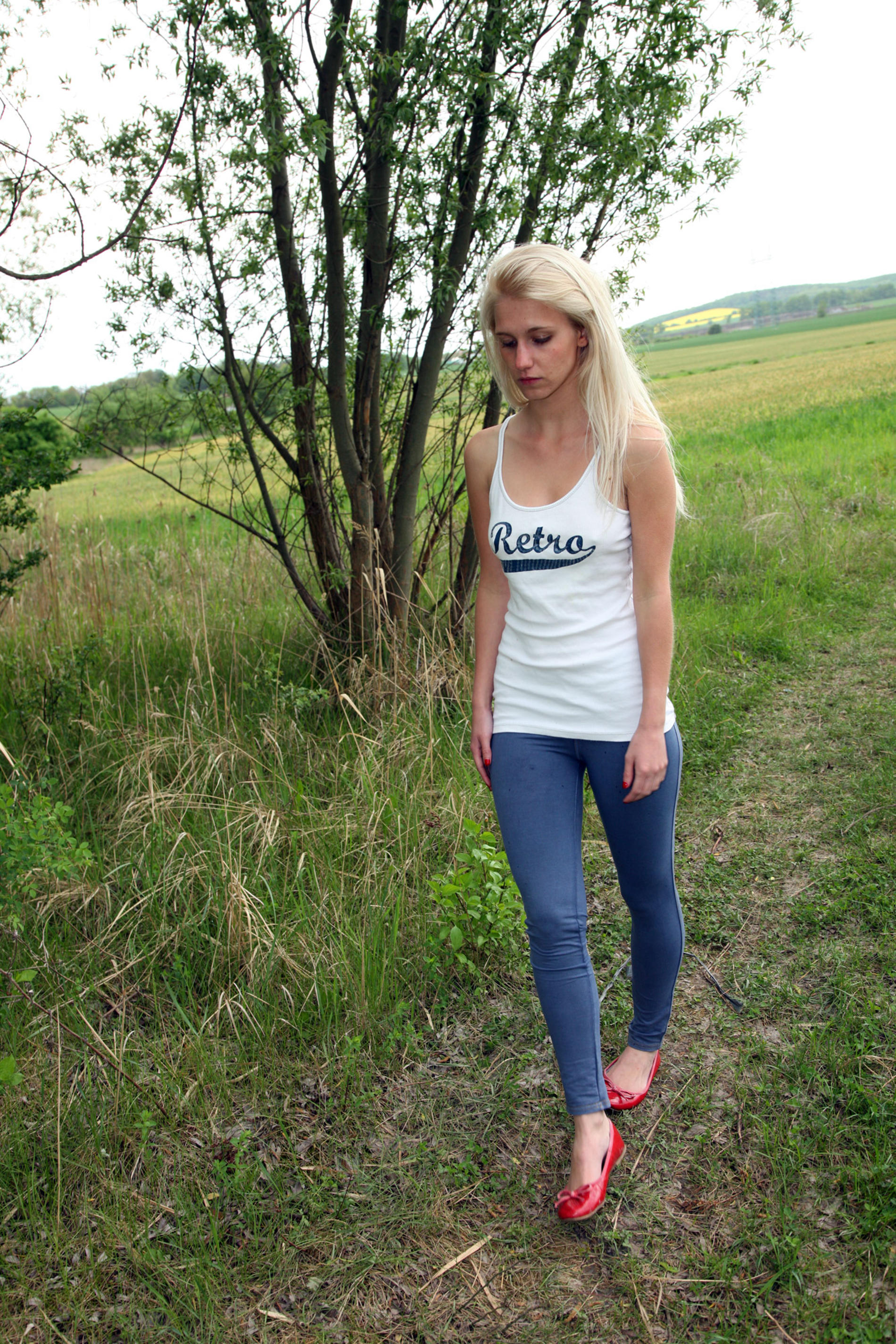 Нежная блондиночка разделась и показала свои прелести на свежем воздухе