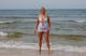 Весьма раскрепощённая женщина позирует в волнах и на песочке