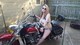 Пышная милфа позирует на мотоцикле на заднем дворе