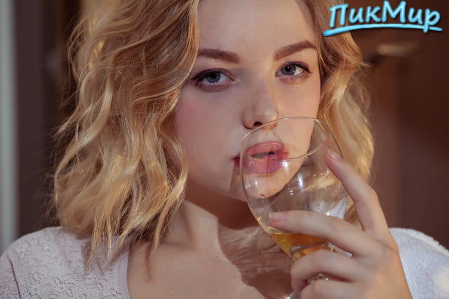 Блондинка выпила бокал белого и устроила жаркий стриптиз