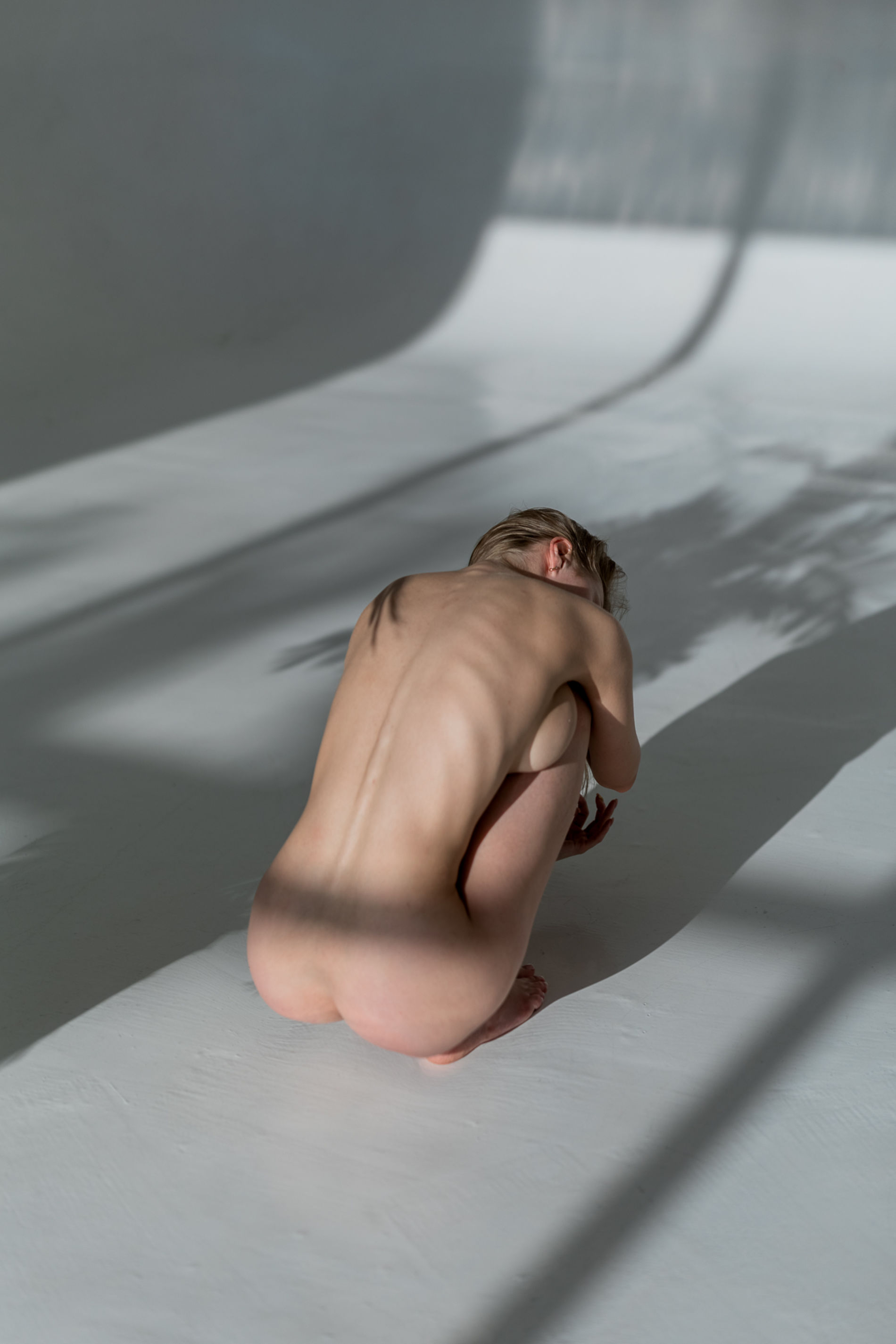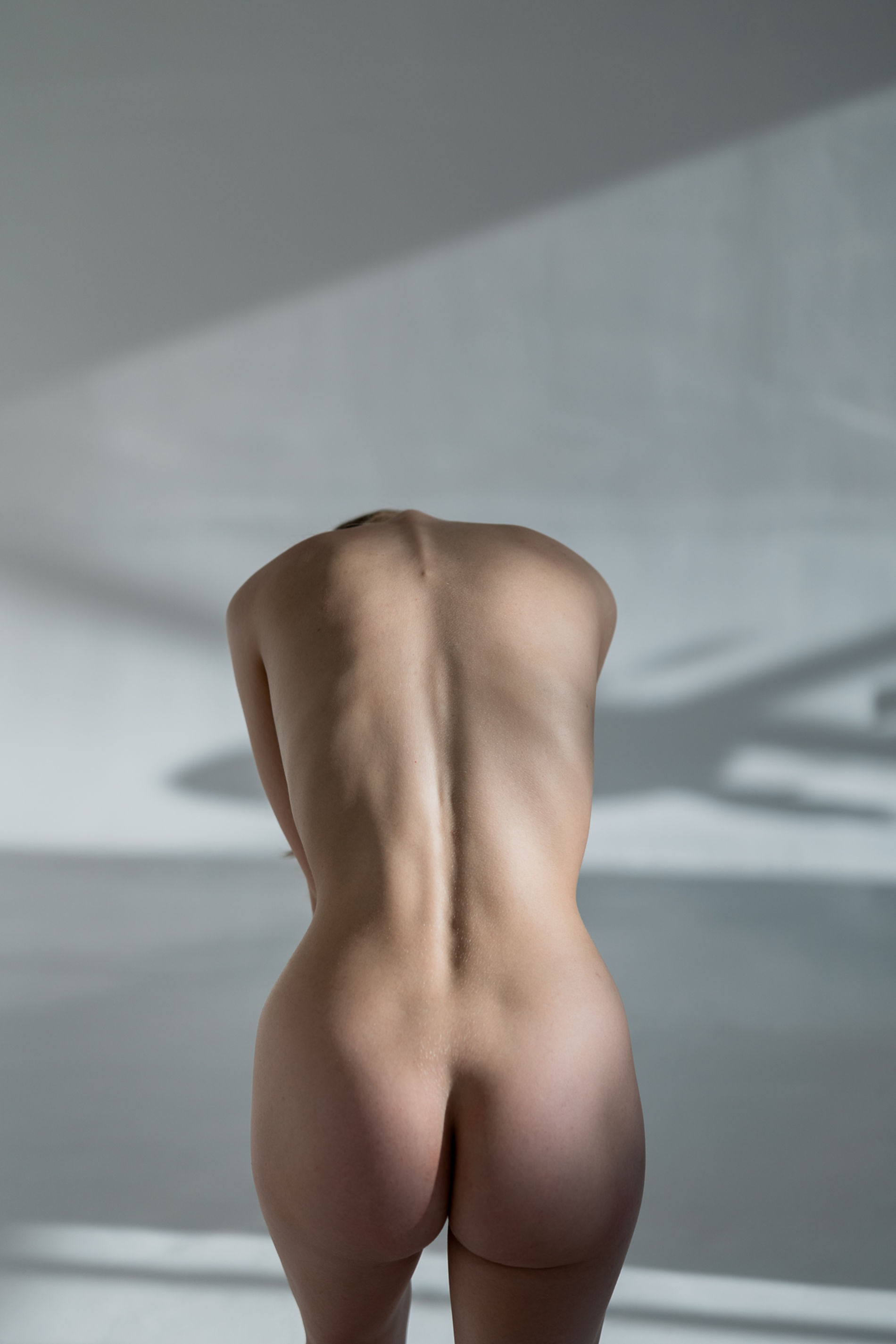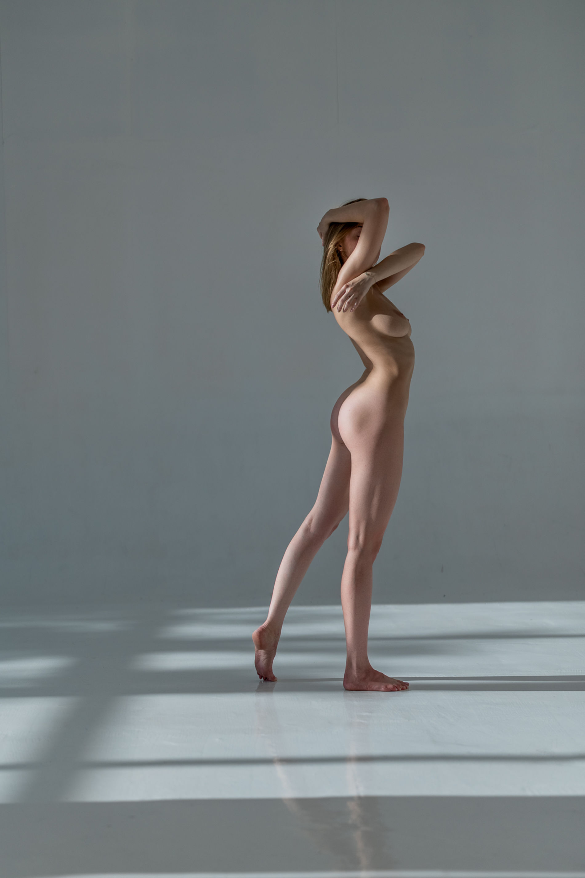 Приятные сисечки и ягодицы у этой стройной худенькое девушки позирующей в светлой студии!