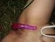И снова обладательница прелестной киски радует нас. Теперь она ублажает себя игрушками, а заодно и позирует на улице.