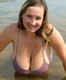 Дама с большими висячими сиськами позирует у воды