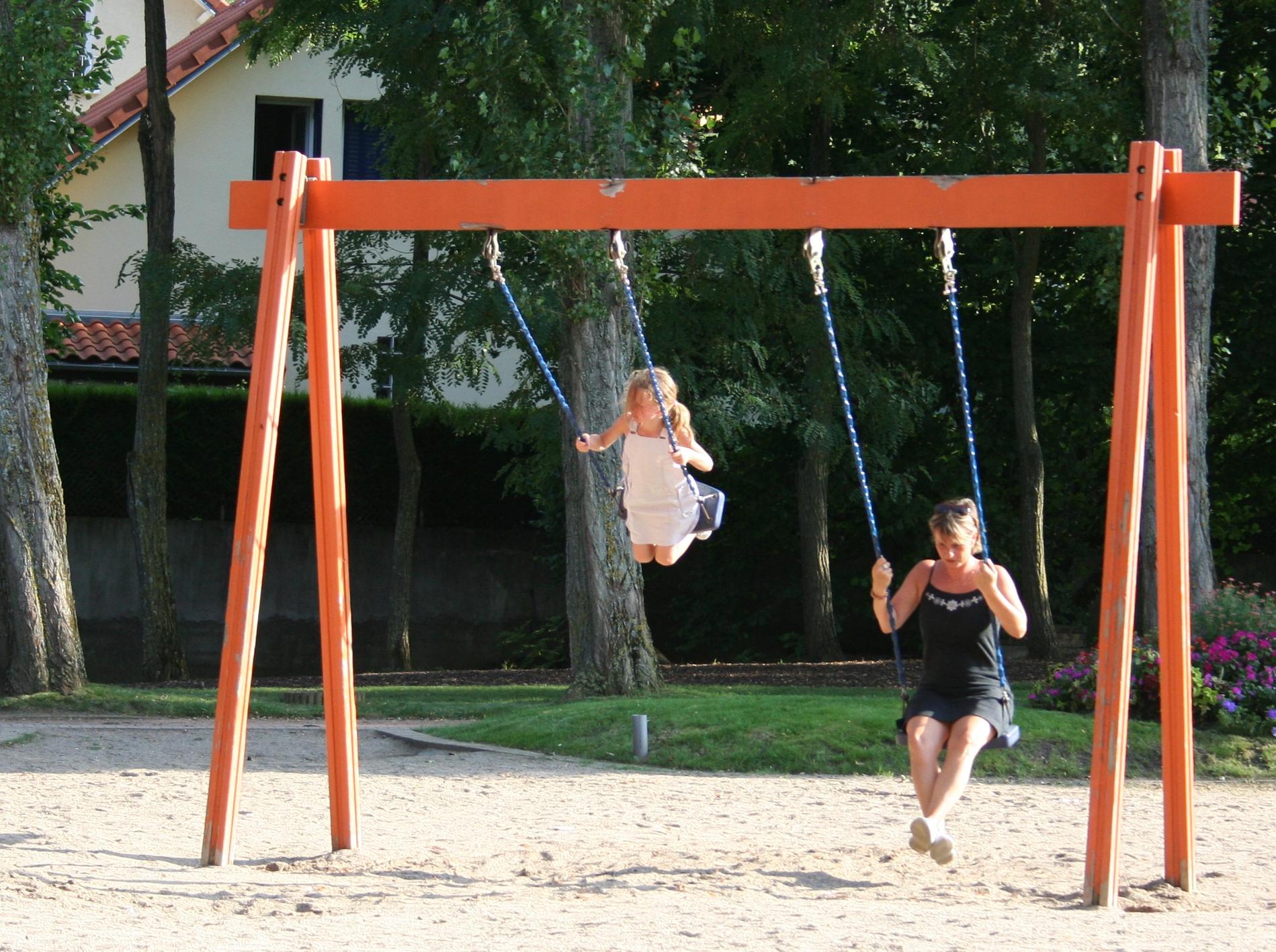 Бабушка вывела внучку на детскую площадку, заодно и прелестями посветила.