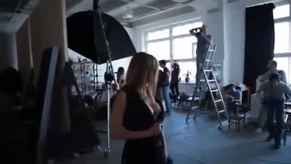 Очаровательная девушка, голая, в окружении объективов фотокамер