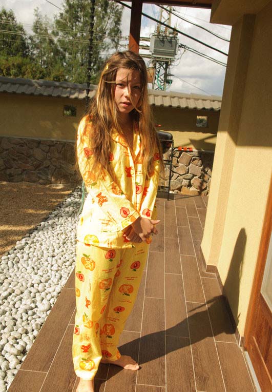 Симпатичная девочка в пижамке очень скромно показывает свои прелести...
