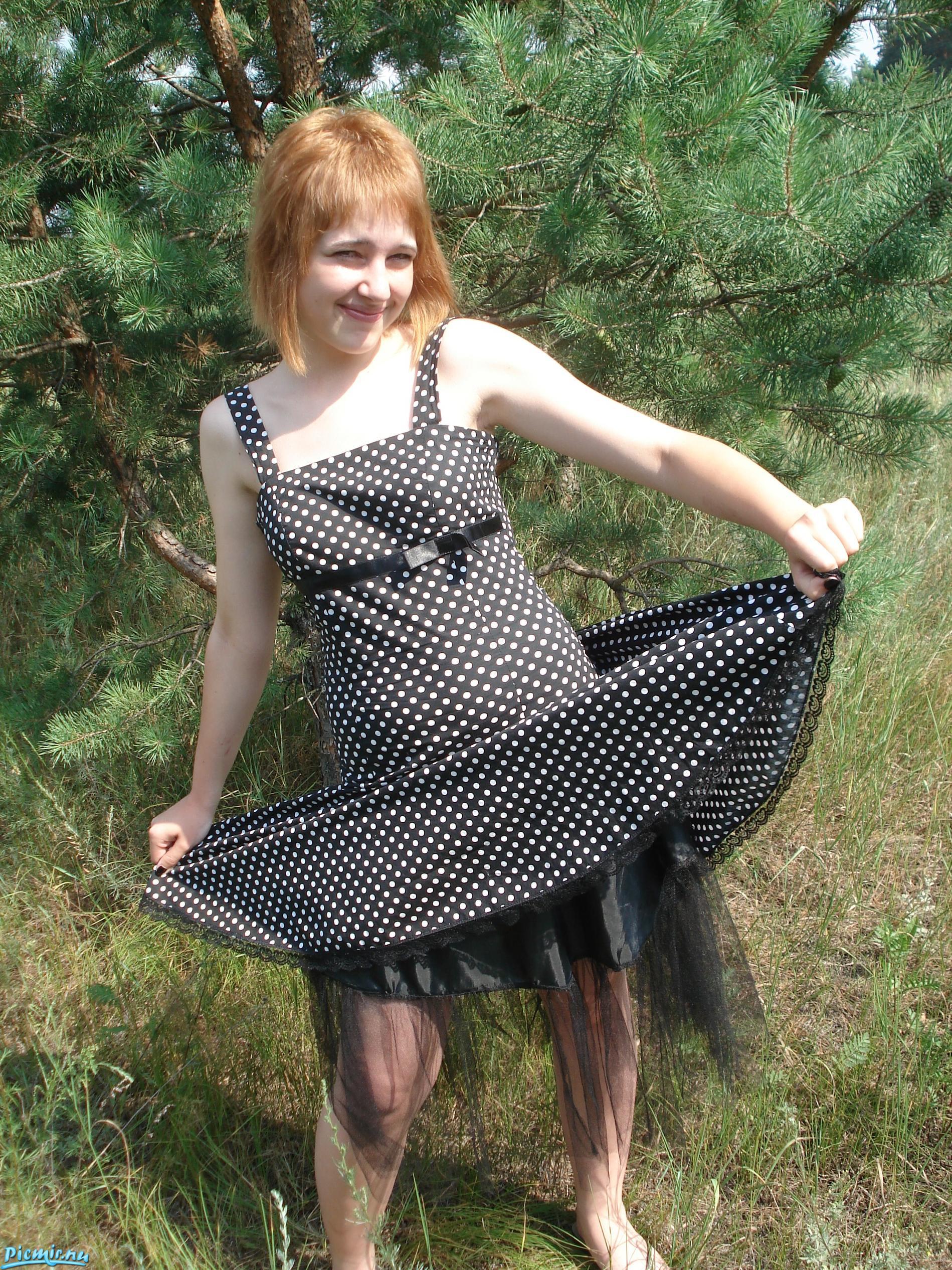 Платье в горошек налитые сиськи торчком! Задорная девица!