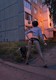 Хороша шлюшка с миленькой татушкой у стены снимает проходящих ебарей
