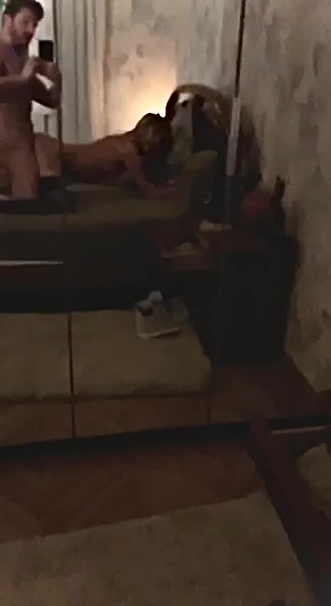 Борадатый парень хлопает по широкой попке красивую блондинку.