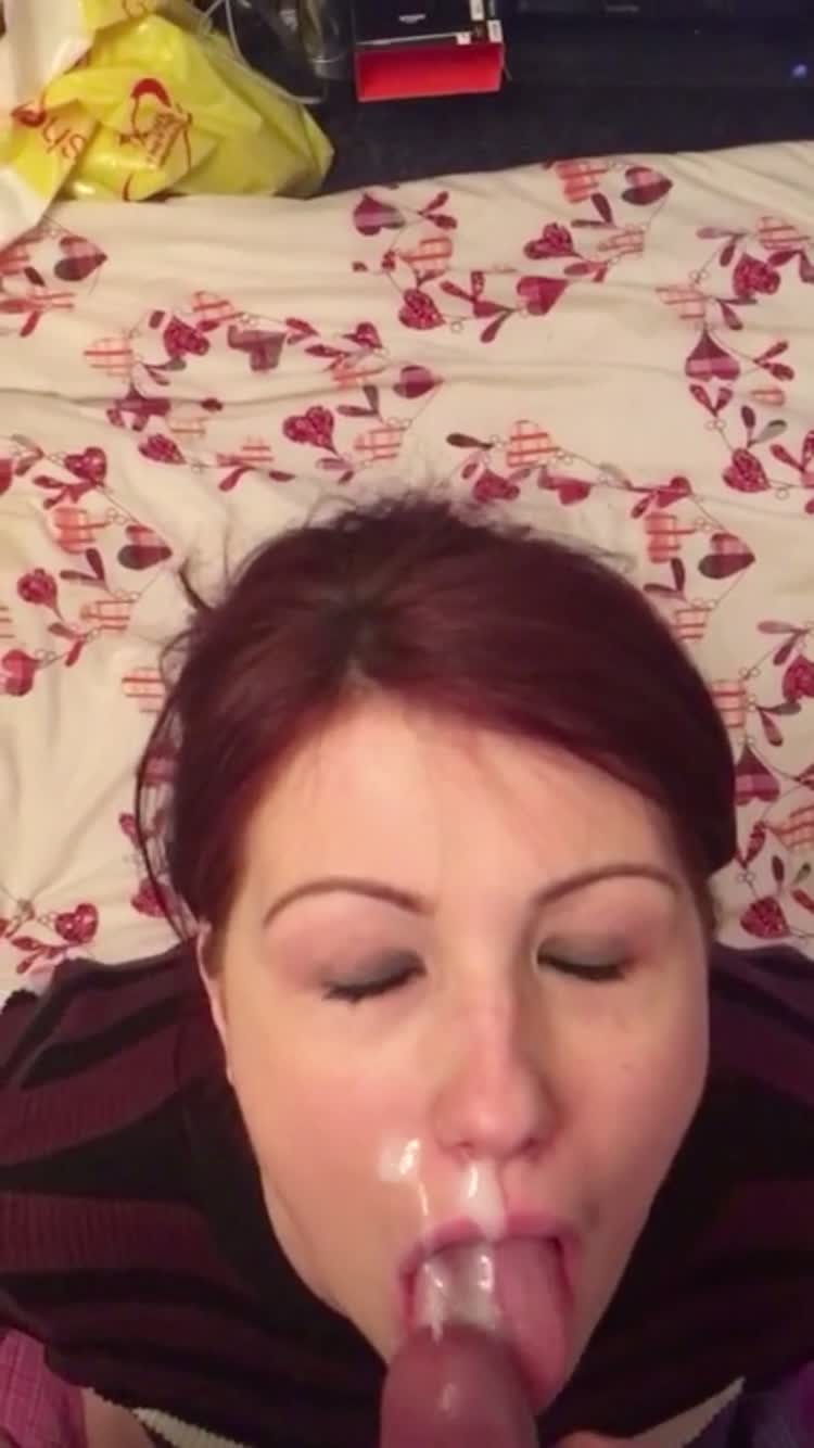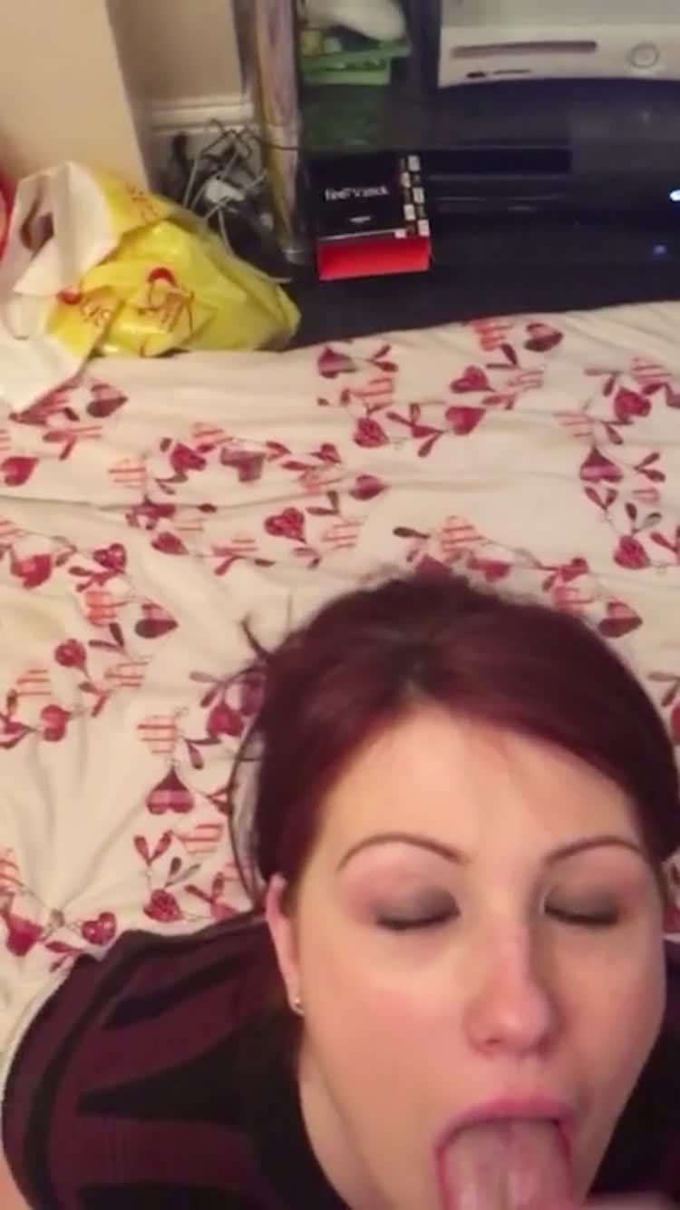 Дамочка минетом доводит до оргазма и получает выстрелы спермы на лицо
