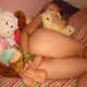 На кровати с игрушками и попробовала себя новой недавно купленной в виде искусственного члена.