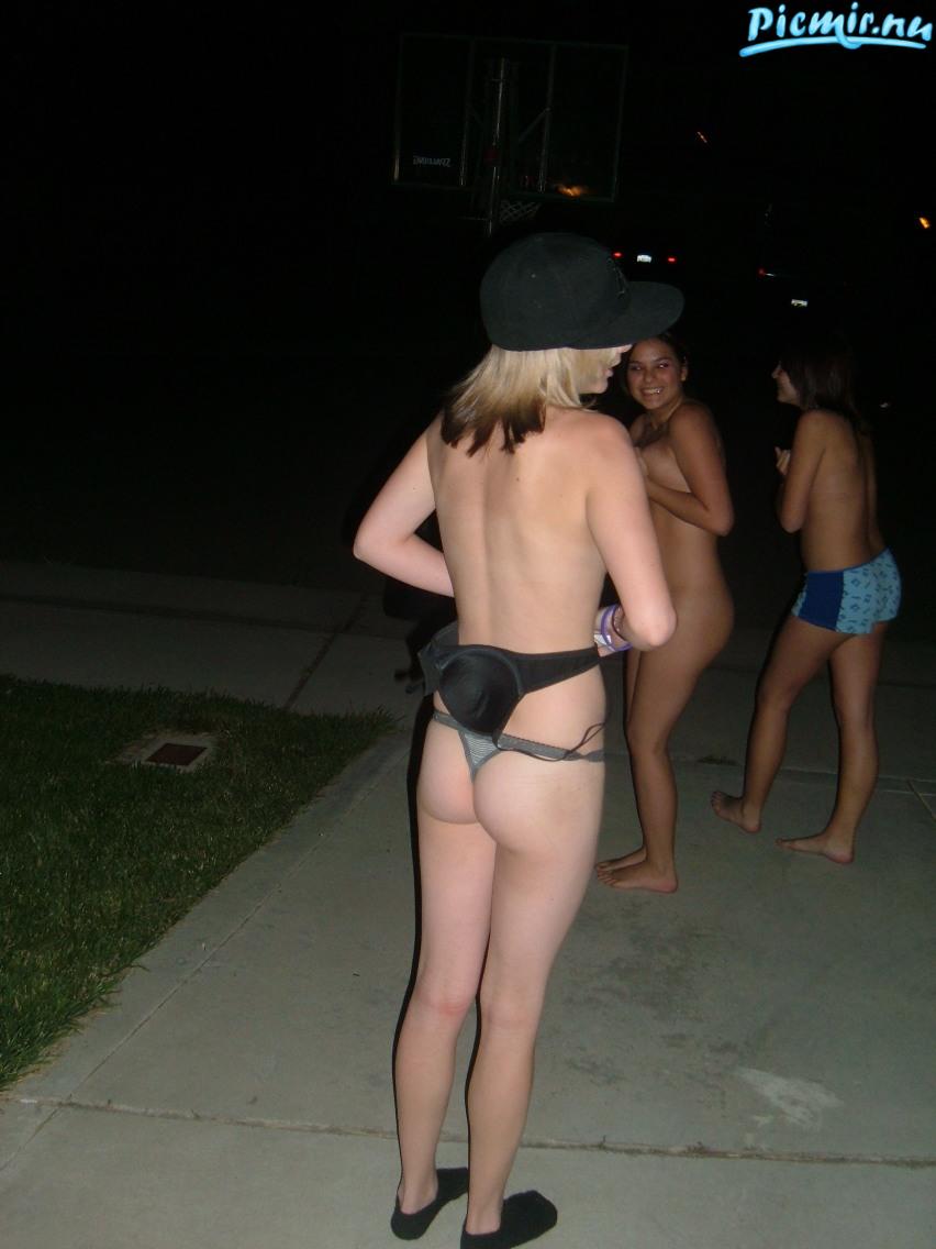 Штаты. Три девки на улице светят сиськами и кисками.)