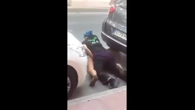 охренел коленками даму по асфальту- кабель а не мужик раком к бамперу или на капот -это красиво