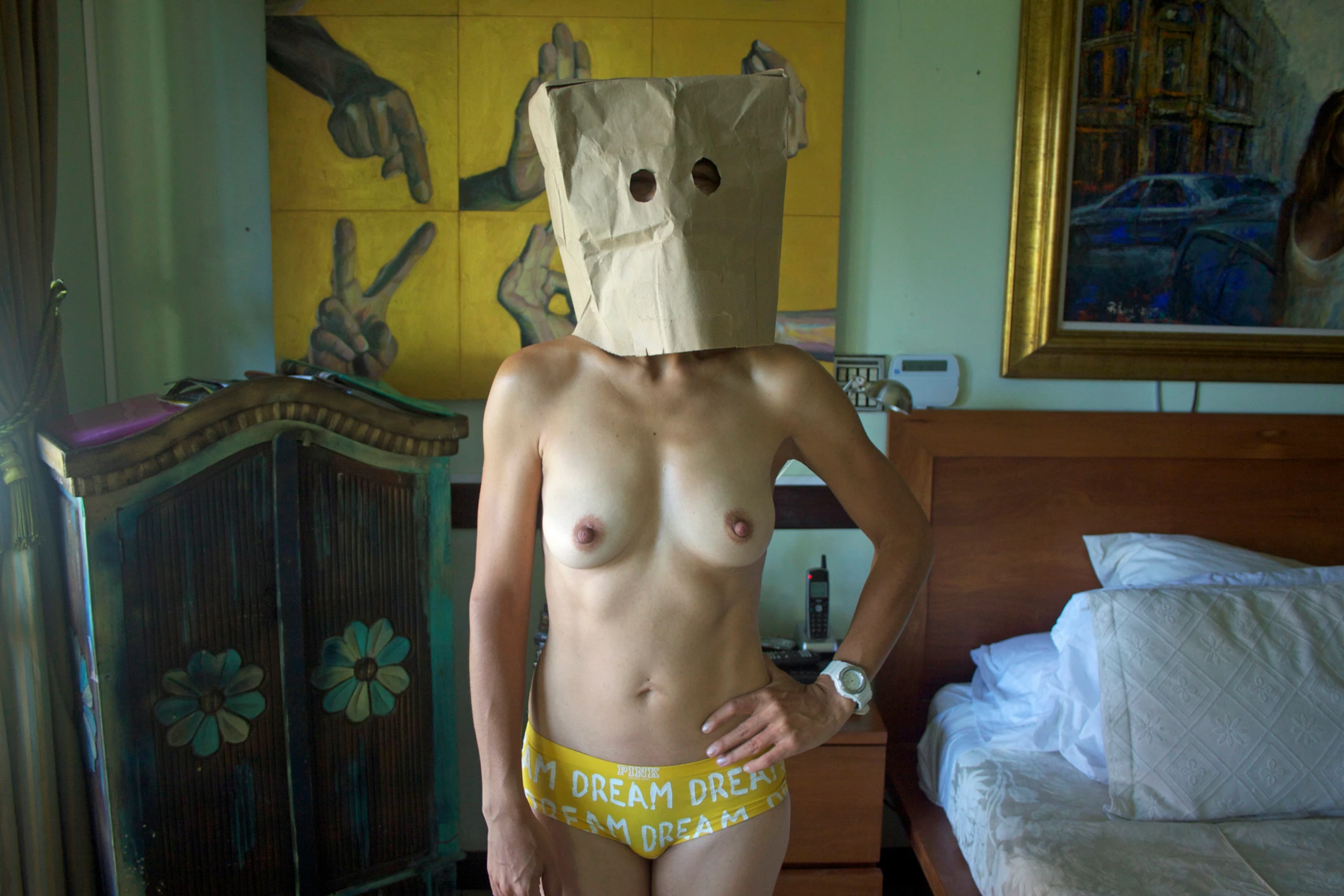 Что-то зачастили в последнее время такого плана фотографии, где на голове пакет у дамы