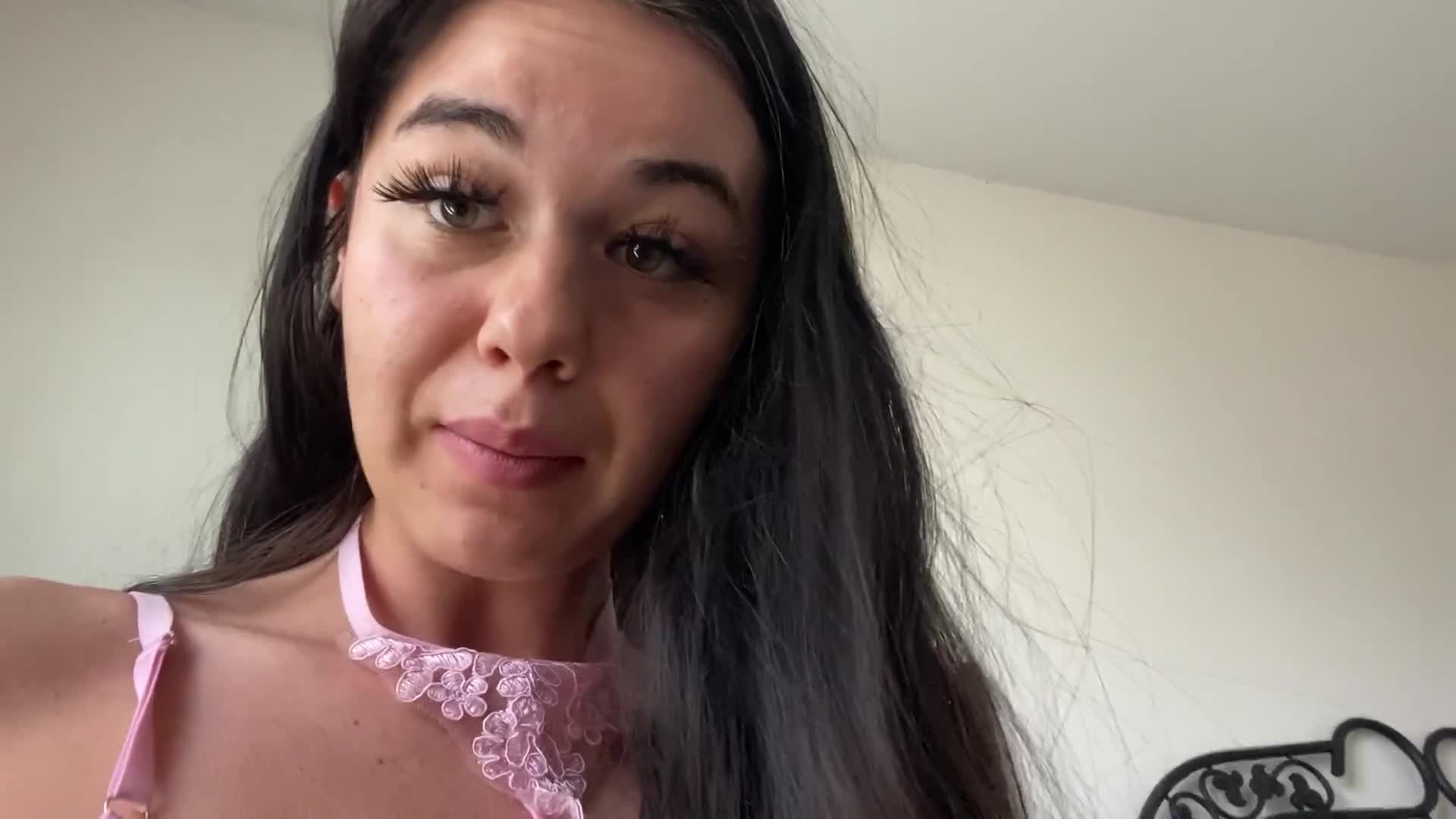 симпатичная девушка в красивом нижнем белье стоя раком какает перед камерой