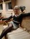 Озорная блондинка позирует.