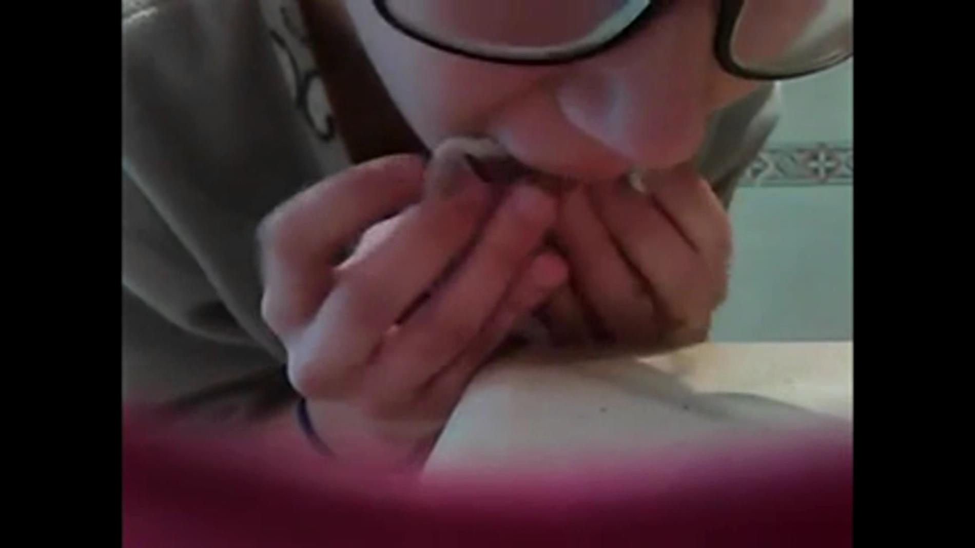 Молоденькая извращенка с удовольствием вылизывает свои трусишки.