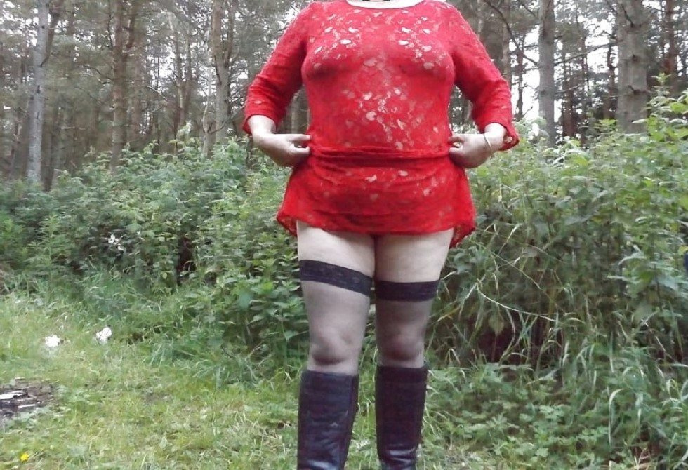 Любит пописать эта зрелка в красном платье на природе!