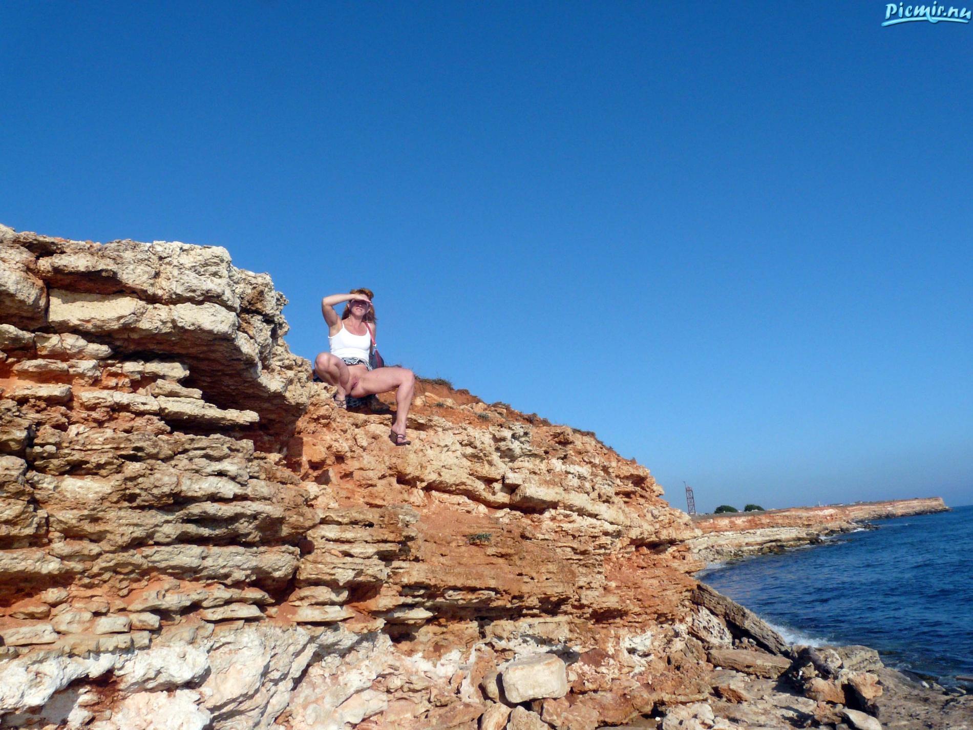рыжая писает у моря